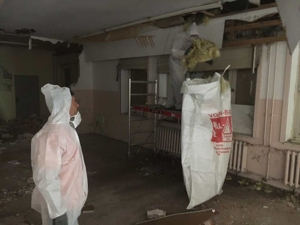 Rückbau und fachgerechte Entsorgung von Mineralwolle, Decken, Dachpappe, Holzparkett
